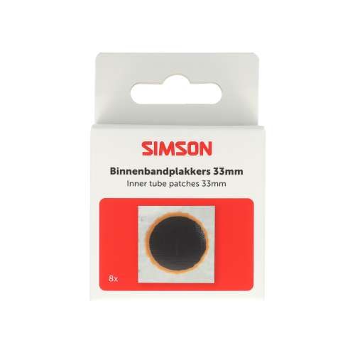 Simson Binnenbandpleisters 16mm. Met deze vulkanisatie pleisters is een lekke binnenband zo geplakt. Geschikt voor vrijwel alle binnenbanden. Ook geschikt ter aanvulling van de gebruikte plakkers uit de Simson Reparatiedoos. De inhoud bestaat uit 8 stuks binnenbandpleisters van 16mm. Te gebruiken in combinatie met de Simson Solutie.